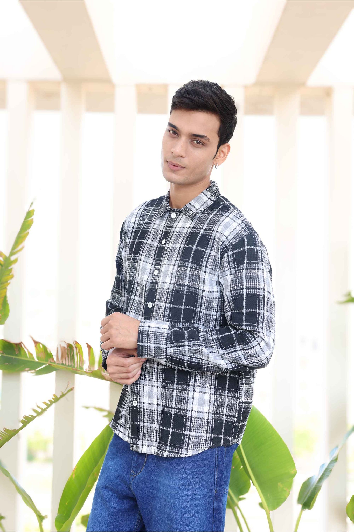 Black Waffle Checks Regular Fit Full Sleeves Shirt