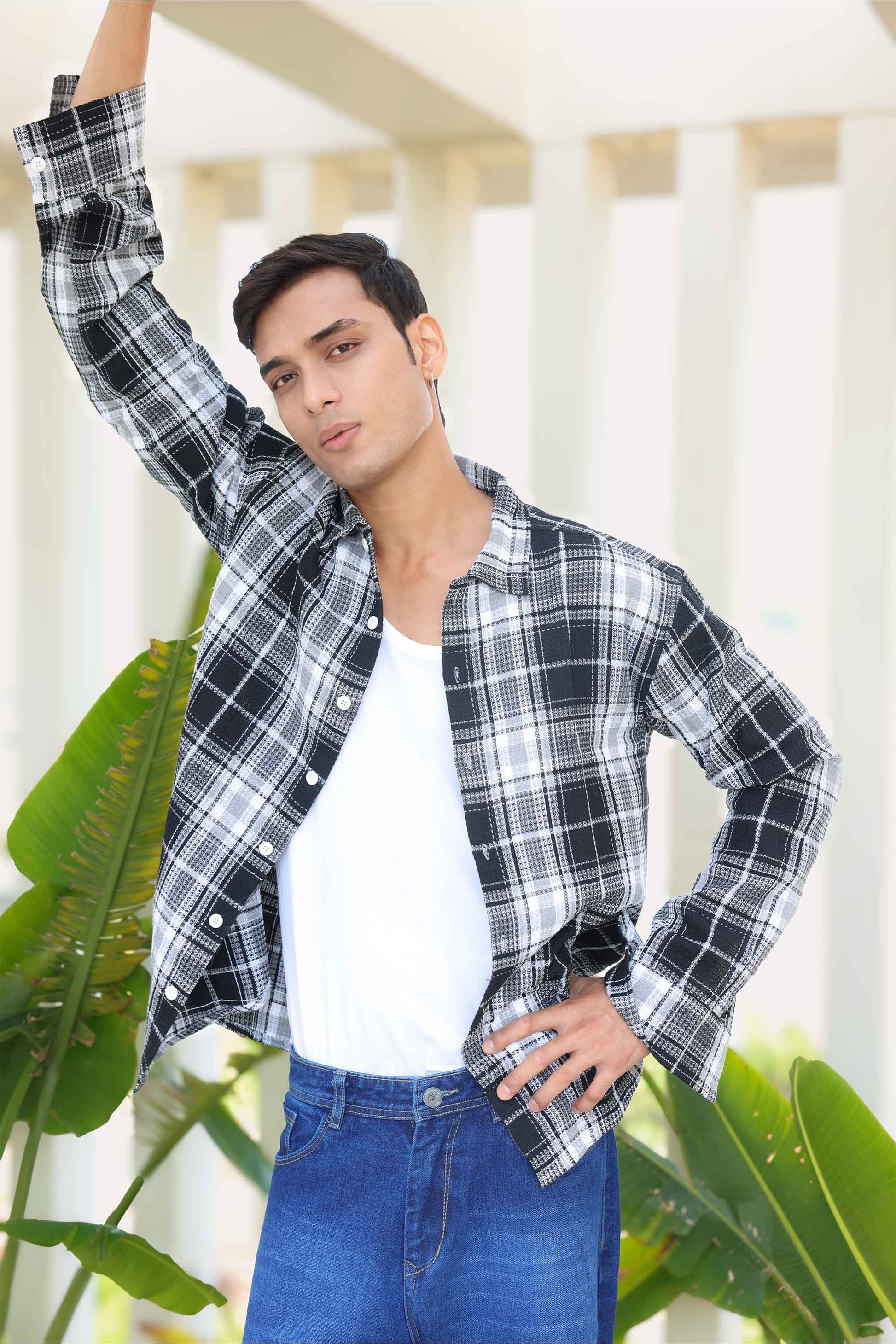 Experience breezy elegance with our Waffle Checks shirts for men. The textured fabric and regular fit embody casual refinement, perfect for beach strolls or outings. Roll up the sleeves for a laid-back vibe or keep them down for a more put-together look. This versatile piece pairs wonderfully with khaki shorts or pants, offering both style and comfort for your adventures.