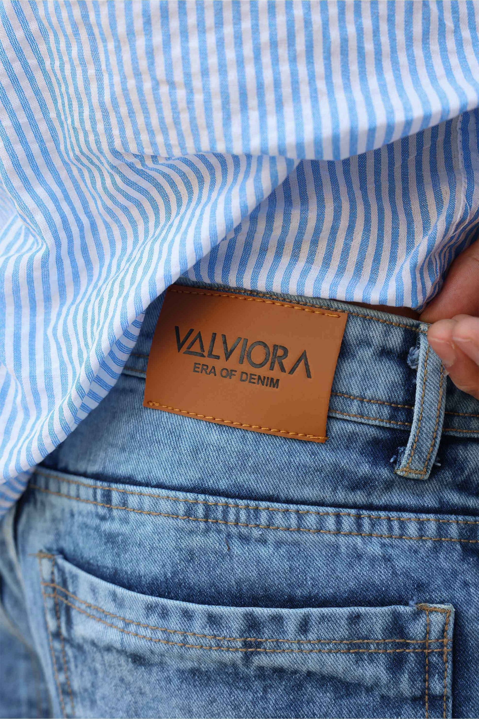 Elevate your everyday style with Valviora’s signature wide leg jeans in classic light blue. Crafted from breathable 100% cotton, this ankle-length pair features a relaxed silhouette that blends comfort with confidence. Designed with a 5-pocket construction, subtle distressed accents, and a secure metal button closure, these jeans are perfect for effortless street style. Whether you're dressing it up or keeping it casual, this versatile piece adds a bold touch to any look.